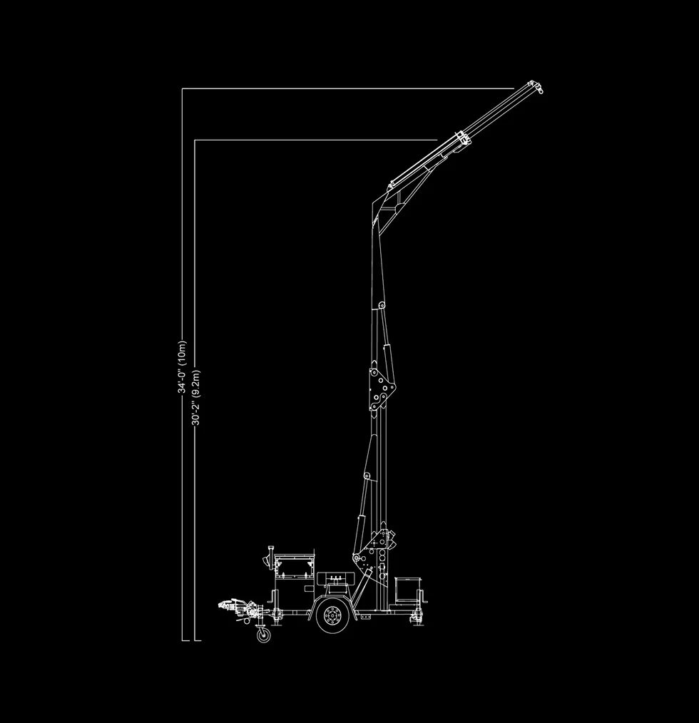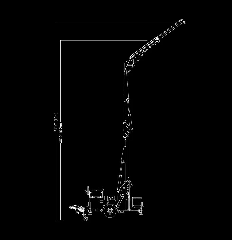 MAX. WORKING HEIGHT 34′-6″ (10m) with Mast Fully Extended