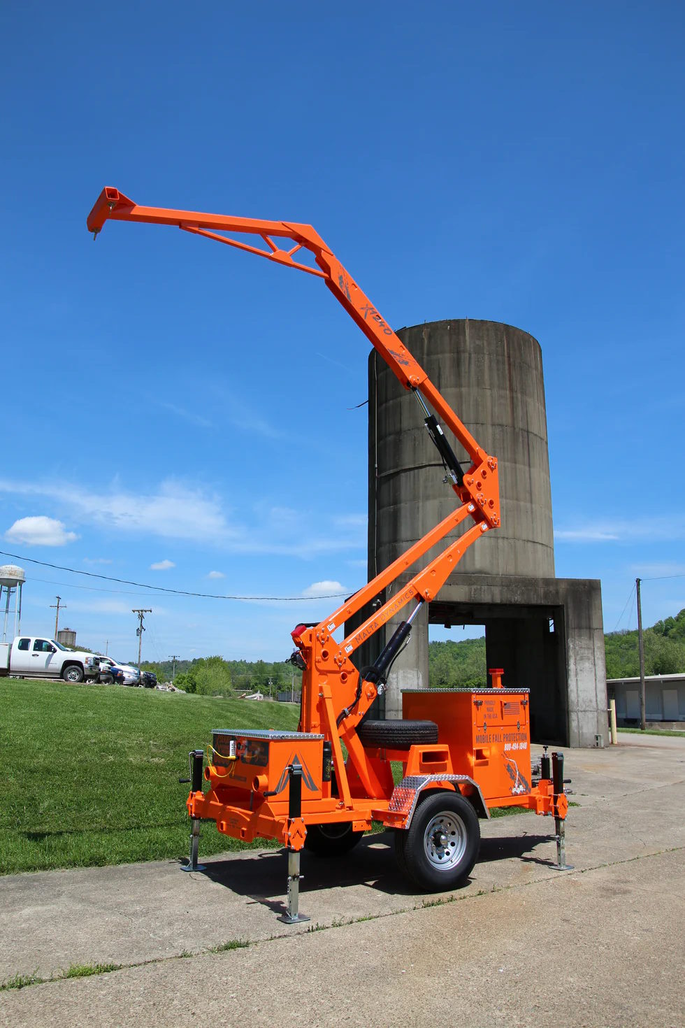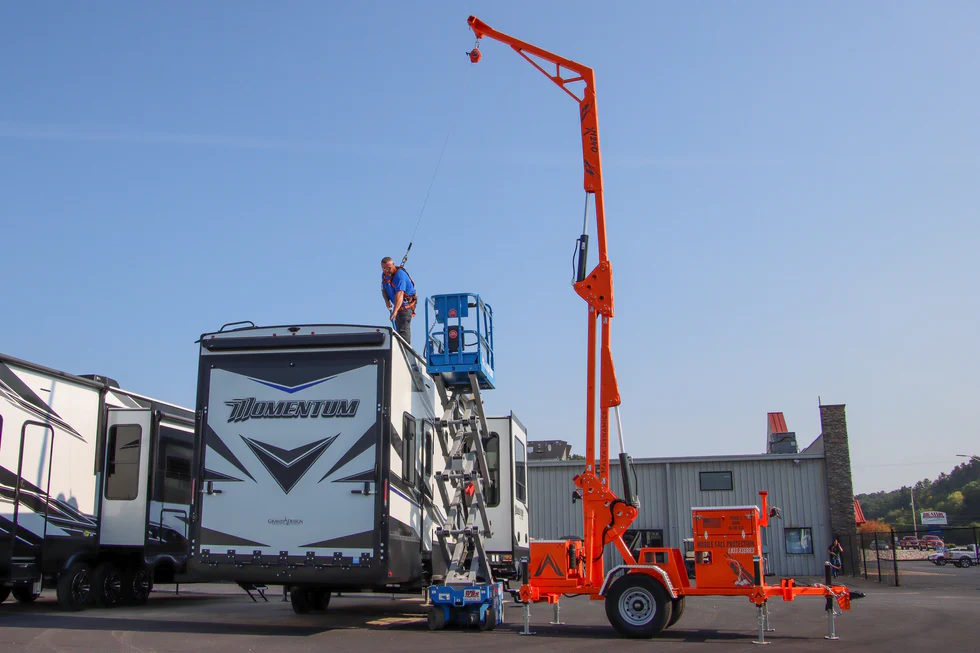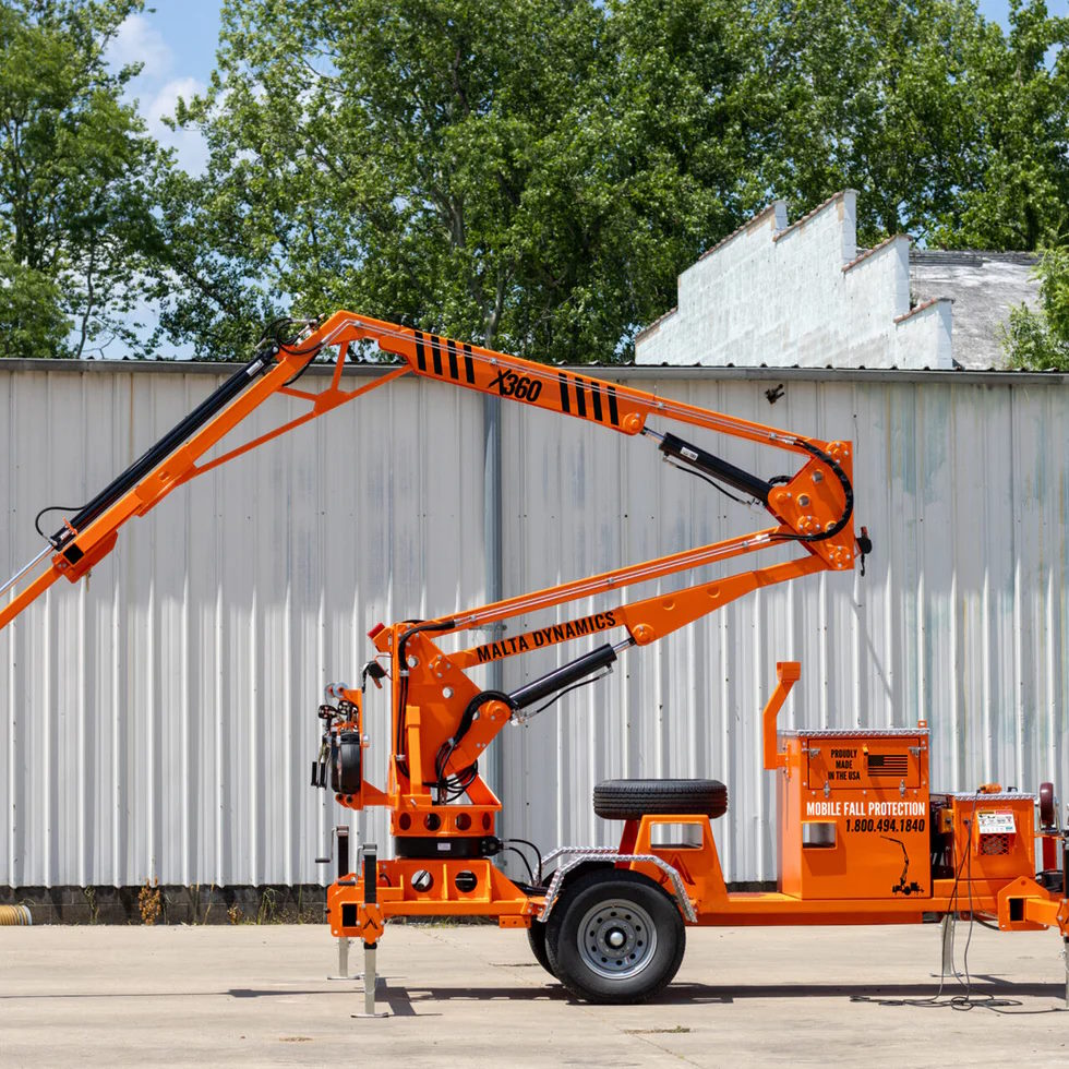 Engineered with a folding steel mast and synchronized hydraulics, the X360 extends from a height of 2 feet to full extension, delivering consistent fall protection at various heights. Its 360-degree rotation further enhances convenience, allowing workers to remain directly beneath the anchor point without needing to adjust the outriggers, making it ideal for projects requiring frequent movement or repositioning.